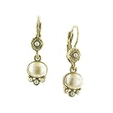 1928 Jewelry , Sure to become a favorite, these bright brass tone and pearl drop earrings have 1928 style written all over them! The lever-back post connects to a double drop of bright brass and pearl features. The iridescent shine adds a bit more of a modern touch to this refined vintage inspired pair you can wear every day. (Read More)